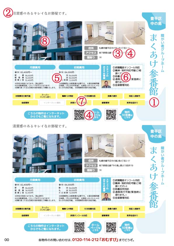 外観、内観の写真3枚 スタッフ写真1枚 間取り図データ